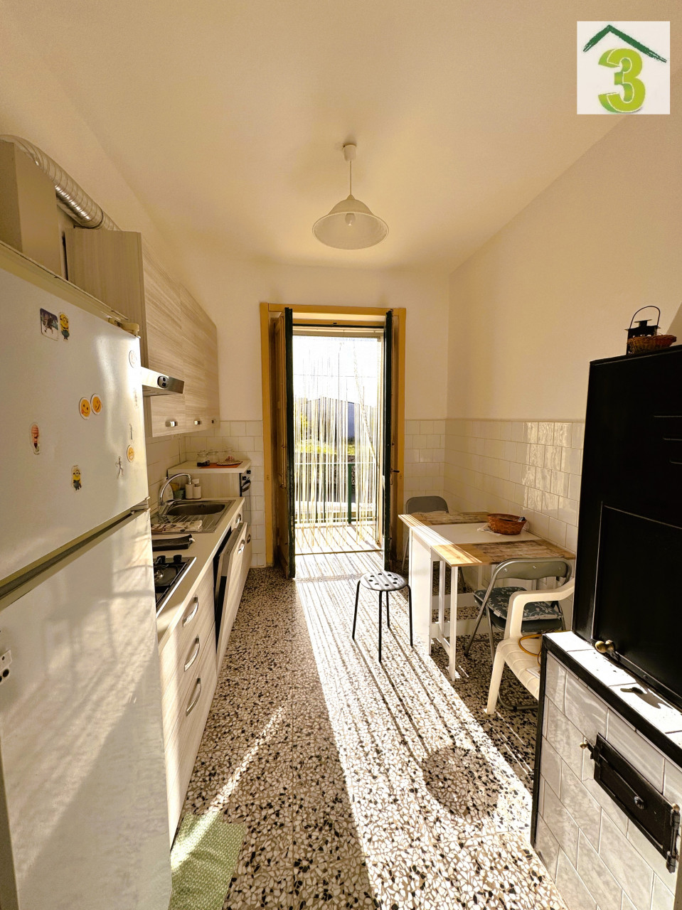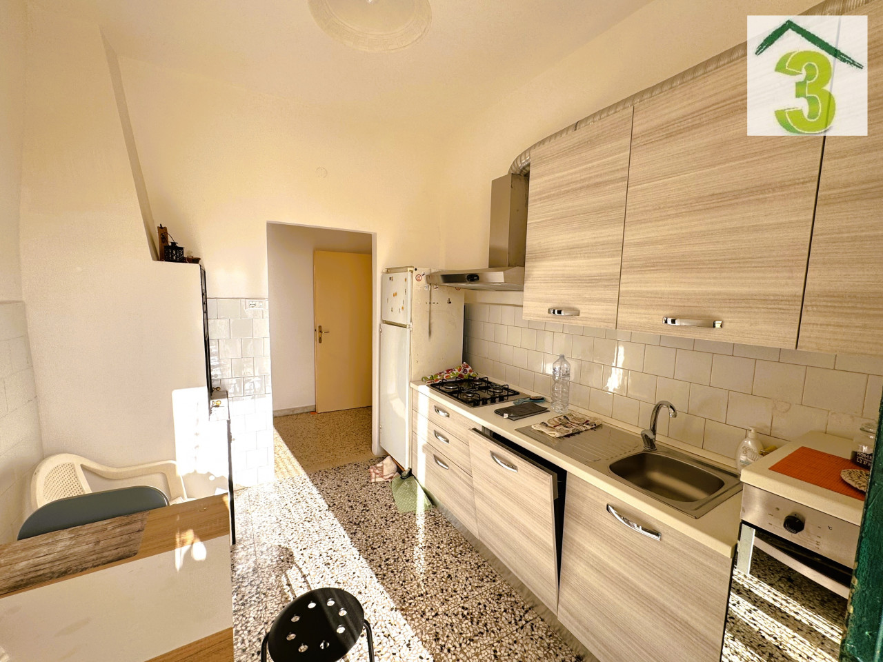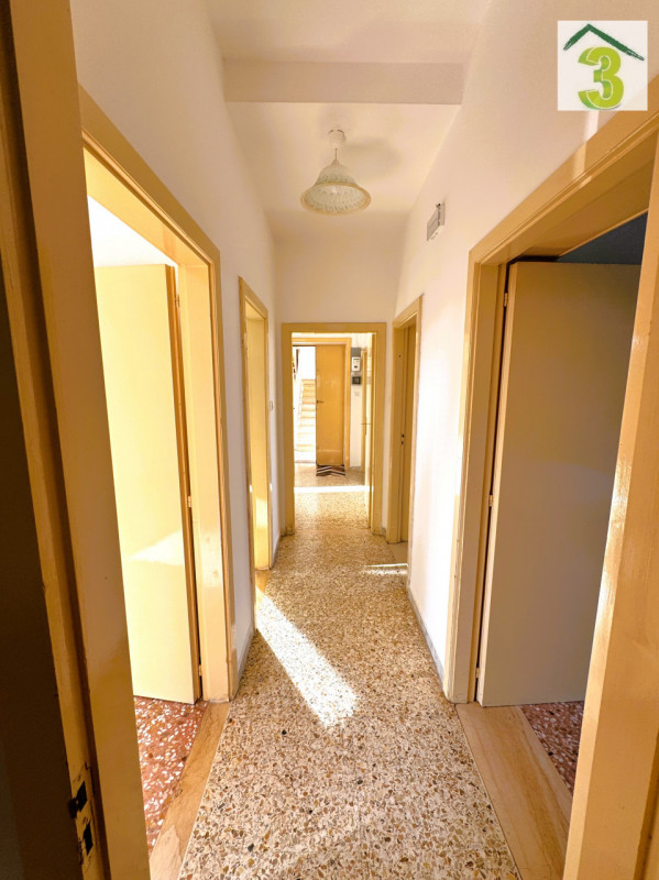 Castiglione, in zona residenziale e ben servita, CASA3 IMMOBILIARE proprone in vendita abitazione sviluppata a piano rialzato con ampio giardino di pertinenza posto nella parte retrostante. La prorpietà situata in un piccolo contesto condominiale , accessibile tramite scala interna, si compone di: ingresso, sala, cucina abitabile con balcone , tre camere da letto, vano ripostiglio e servizio igienico. Arricchisce la proprietà il garage di circa 20 mq. AQP e fognatura con contatore di sottarazione.